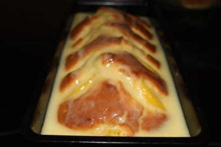 Выложить тесто в форму, смазанную сливочным маслом и присыпанную мукой. Выложить кусочки персиков. Запекать при 180 гр. 35 минут.
