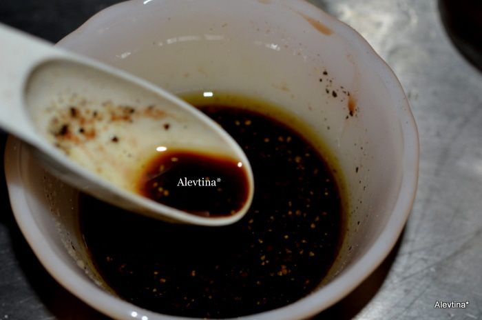 Приготовим заправку, смешаем уксус с оливковым маслом. посолим и поперчим.