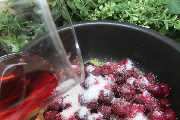 Вишню разморозить, если есть косточки, аккуратно удалить.