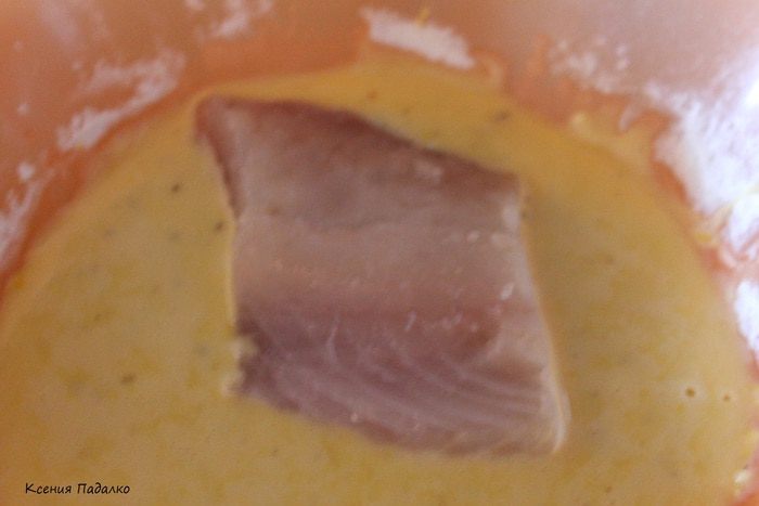Смешать все ингредиенты для кляра. Количество муки я написала примерное, т.к. нужно смотреть по консистенции, она должна быть как на оладьи.