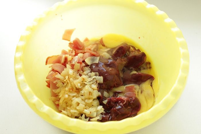 Выложить чернослив (чернослив не жалейте,положите по-больше) сверху паштета и при помощи ложки залить желе.