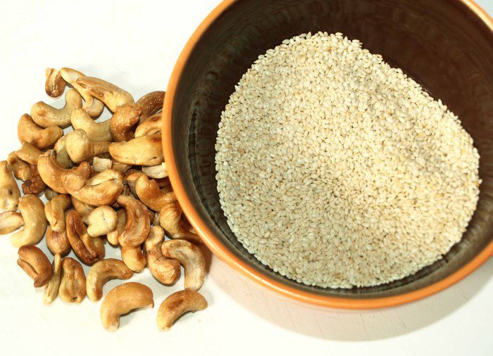Орехи кешью и кунжут обжарить.