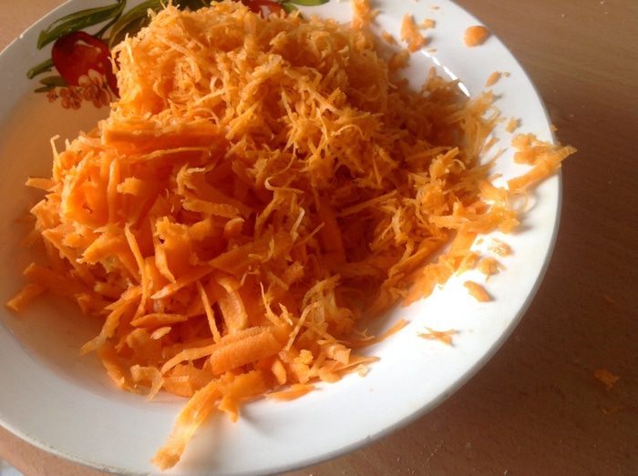 Одну морковку чистим на крупной терке, а вторую на мелкой