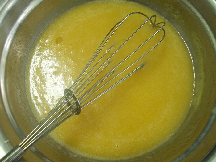 Добавляем сахар, мед и масло и ставим на водяную баню до полного растворения.