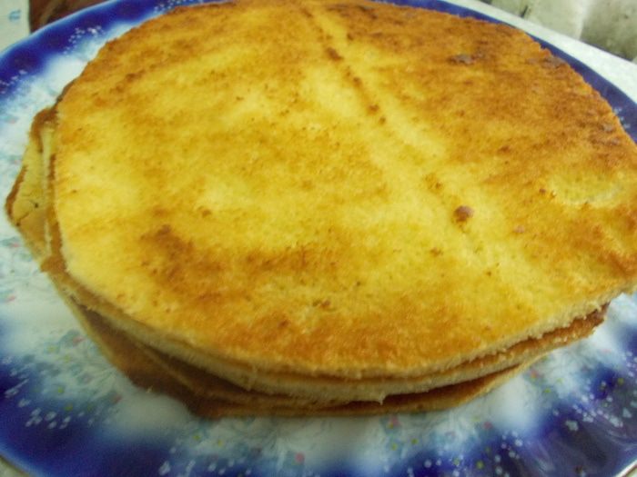 Теплый корж сразу же обрезаем по нужному размеру.