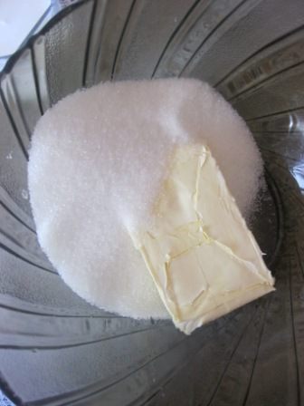 В миске соединить сливочное масло размягченное с сахаром, до однородного состояния.