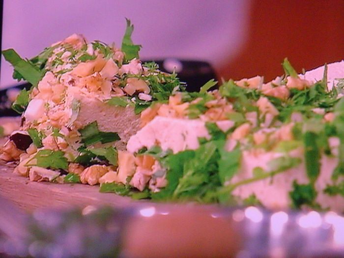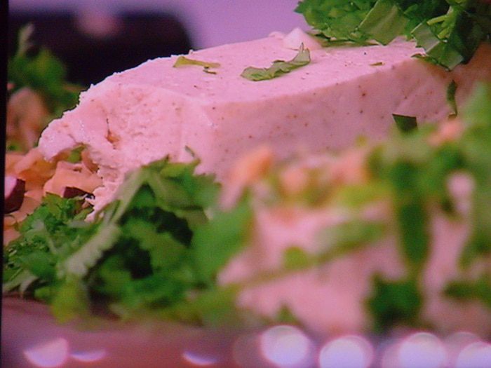 Террин нарежьте на порционные кусочки, не слишком мелко, обваляйте его в орехово/травяной смеси: щедро и подавайте, к примеру с поджаренными на оливковом масле гренками из ржаного хлеба. Бокальчик белого охлаждённого сухого вина идеально подойдёт к сырной закуске!