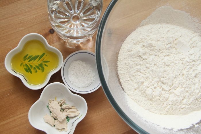 Теперь самый ответственный момент. Взять батончик и, растягивая его на весу в длину, переложить на горячий противень швами вниз. Выпекать при 220*С примерно 18 минут (ориентируйтесь по своей духовке).