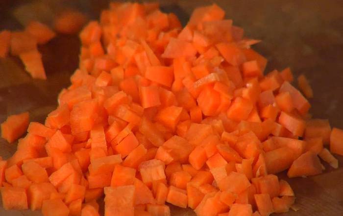 Морковь почистить и мелко порезать.