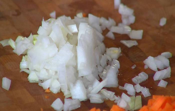Весь лук почистить, половинку луковицы мелко нарезать.
