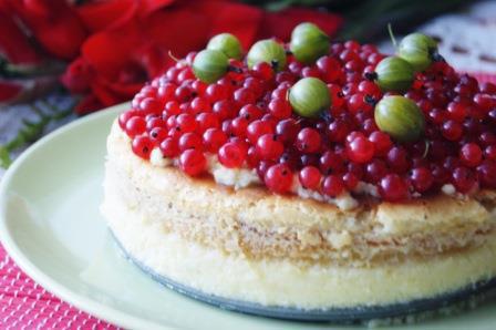 Готовый чизкейк украсить по желанию. Я растопила 50 гр. белого шоколада, и выложила красную смородину и крыжовник))