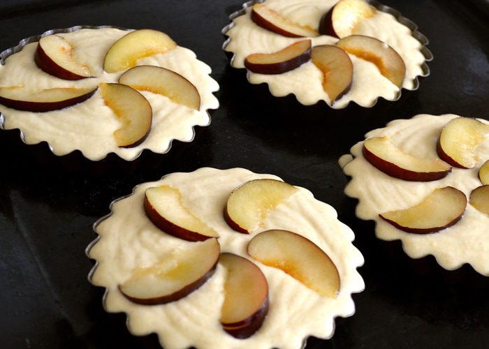 Выпекать в разогретой духовке около 30 минут. Готовые пирожные остудить на решетке. (Сливы на фото отличаются, т.к. первую партию готовых пирожных вообще не удалось сфотографировать! И фотосессии подверглись пирожные из третьей или четвертой партии...))))