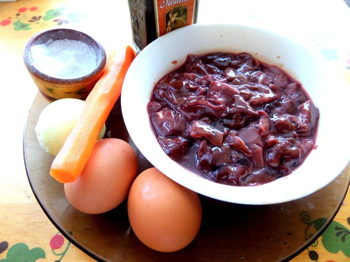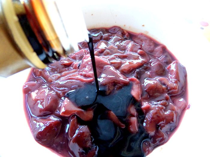 Нарезанную свежую печень зальём тёмным уксусом и дадим постоять немного.