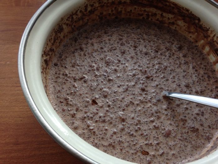 Добавить арахисовое масло. Снять с огня. Арахисовое мало я готовлю сама. Рецепт здесь: http://www.edimdoma.ru/retsepty/57732-shokoladno-arahisovyy-tart