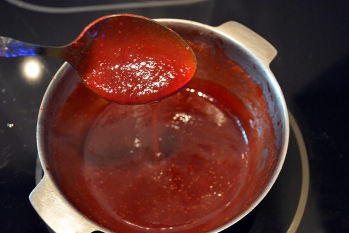 Мне хотелось сделать заливку жидковатой, чтобы при разрезании тортика она красиво растекалась по тарелке.