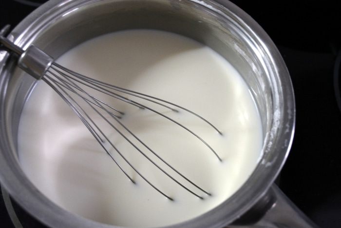 Для начинки, в кастрюльке смешиваем сгущенное молоко, воду, кукурузный крахмал.