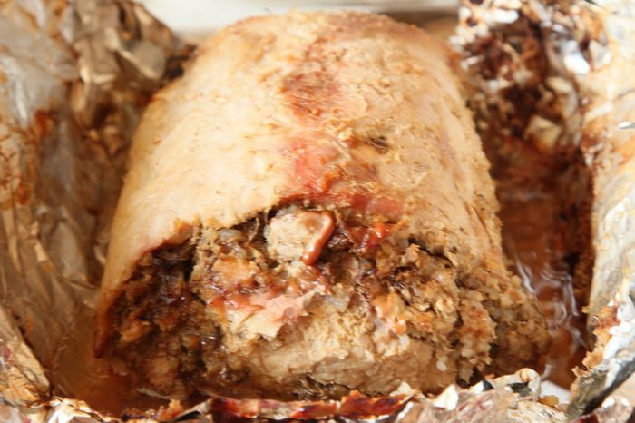 Добавляем температуру до 200 градусов и выпекаем еще около 30 минут, смазывая рулет глазурью каждые 10 минут. Вот так получилось в конце.