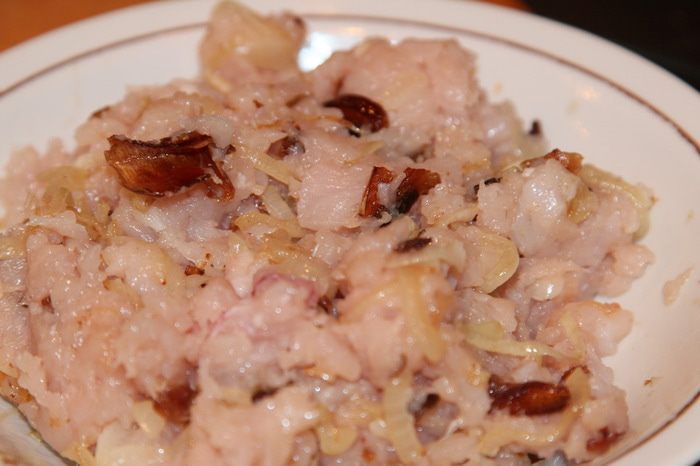 Куриное филе смалываем в фарш, добавляем лук с грибами и вымешиваем.