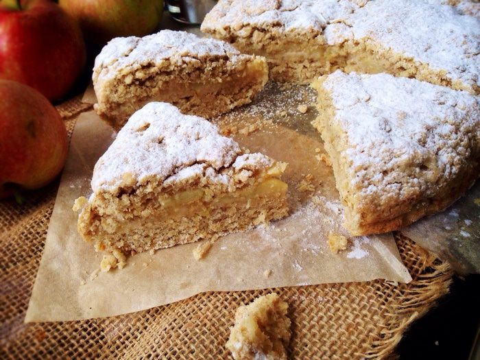 Нежная кисловатая прослойка в суховато хрустящем тесте...Очень ароматный и уютный пирог.