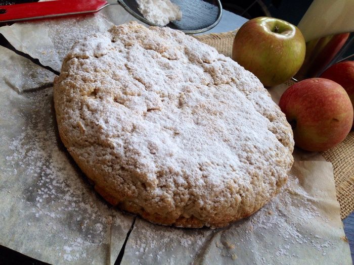 Стакан-240 мл. Форма-20см. А яблок в среднем уйдет 2-3 шт.В тесто еще можно добавить 0.5 ч.л. мускатного ореха,у меня под рукой не было!)
