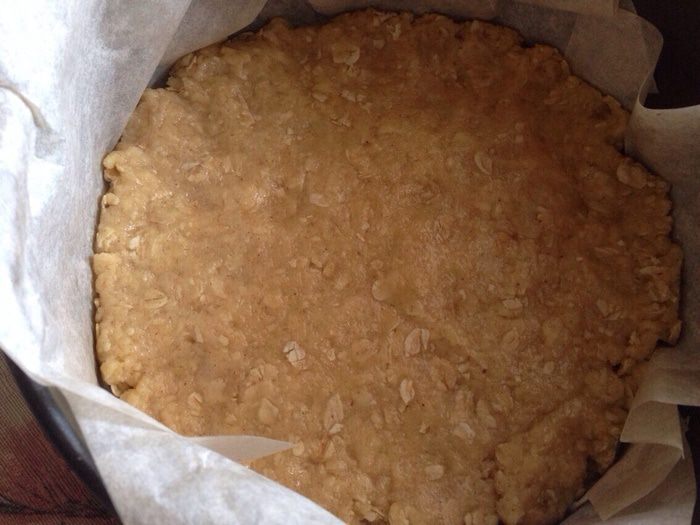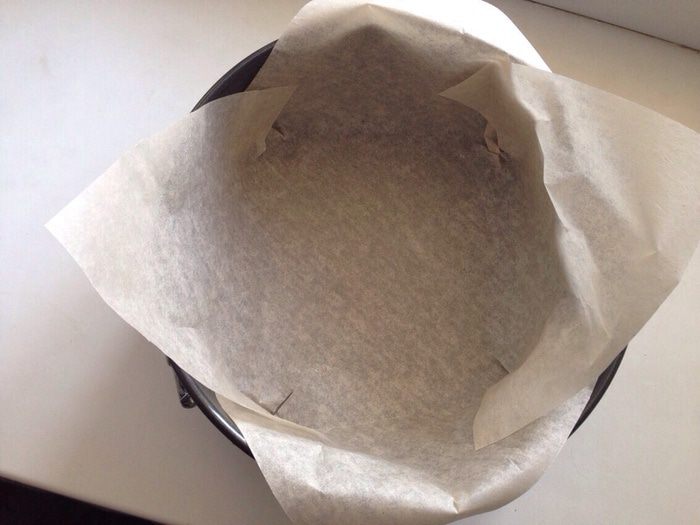 Фому для выпечки застелить пергаментом (20см) и отправить в холодильник.