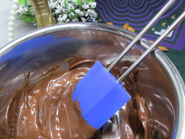 Когда шоколад схватится, нанести рисунок шоколадом.