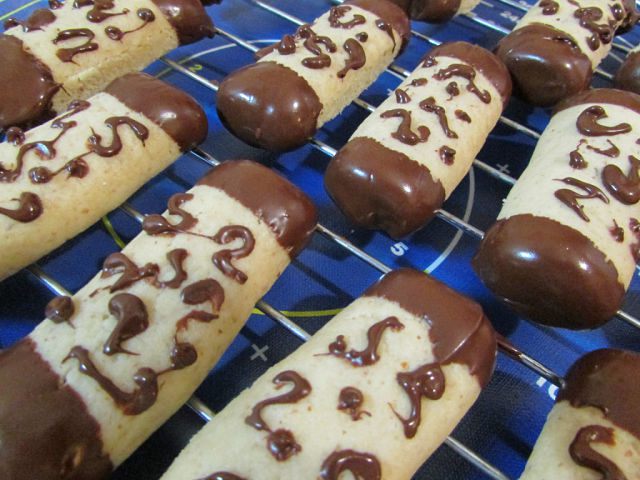 Оба конца печенья обмакнуть в шоколад и выложить на решетку.