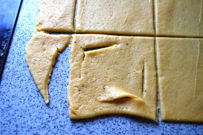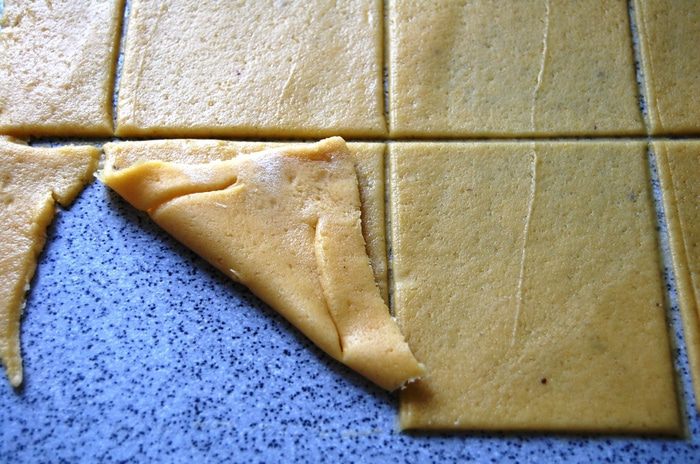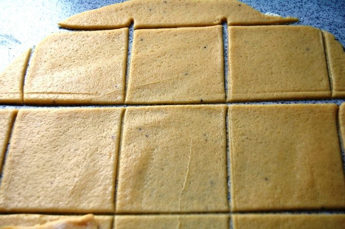 На каждый квадратик по 1 десертной ложке начинки.
