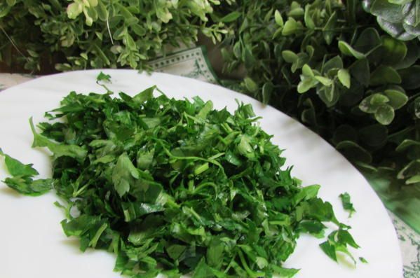 Зелень (у меня петрушка) вымыть, хорошо обсушить и мелко порезать.