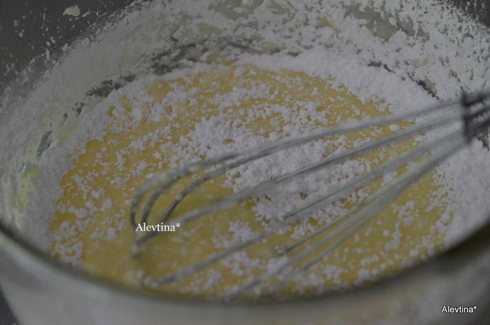 Добавим в мягкую консистенцию сахарную пудру и сахар, перемешаем.