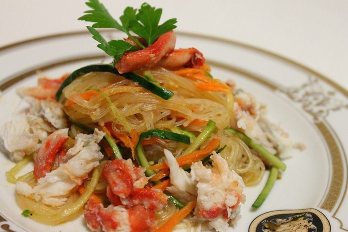 Выложить на тарелку и украсить мясом краба. Приятного аппетита!