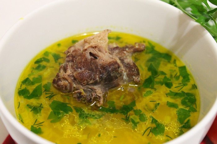 Разливаем суп по тарелкам, и кладем по кусочку шейки. Или можно с шейки срезать мясо и положить его в тарелку. Приятного аппетита!)