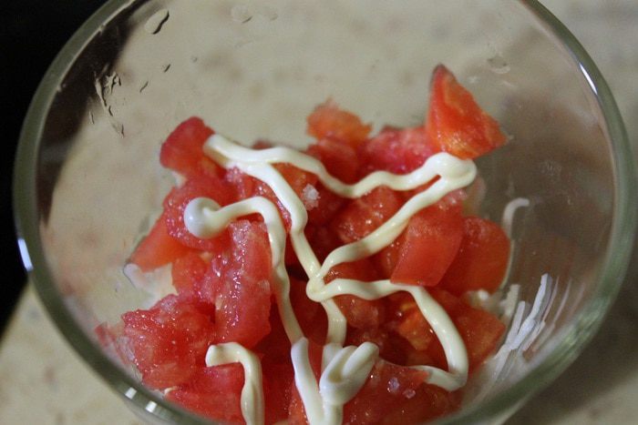Потом слой помидоров, соль, и майонез.