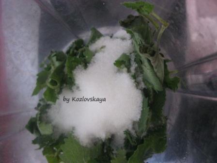 В несколько этапов измельчить мяту в блендере с сахаром (100 г из общего количества сахара).