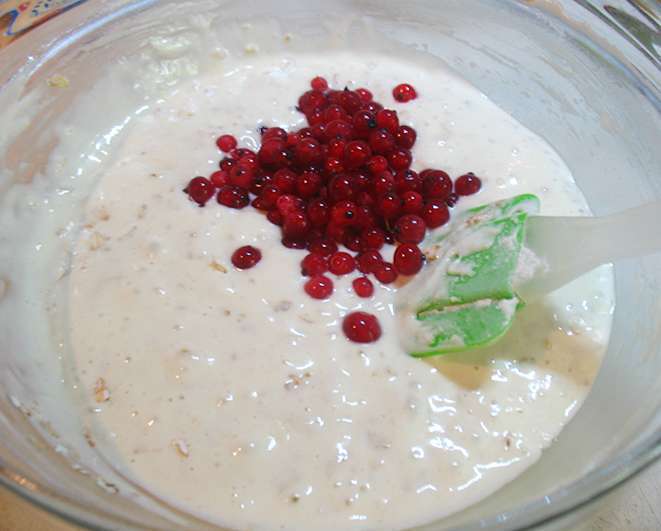 Добавить 3/4 смородину и аккуратно перемешать.