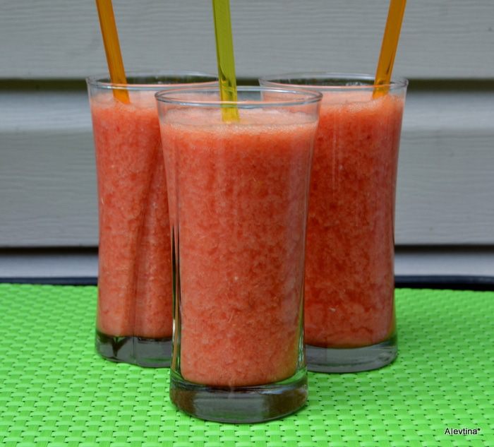 Из свежих фруктов и замороженных ягод. Прекрасный витаминный напиток в жаркую погоду.