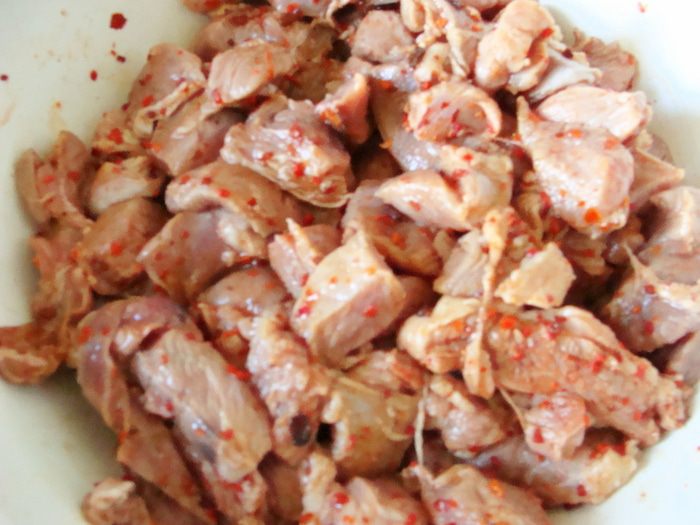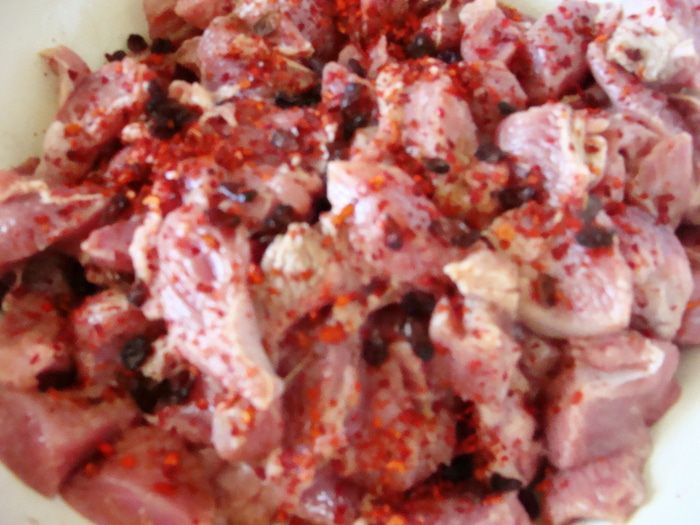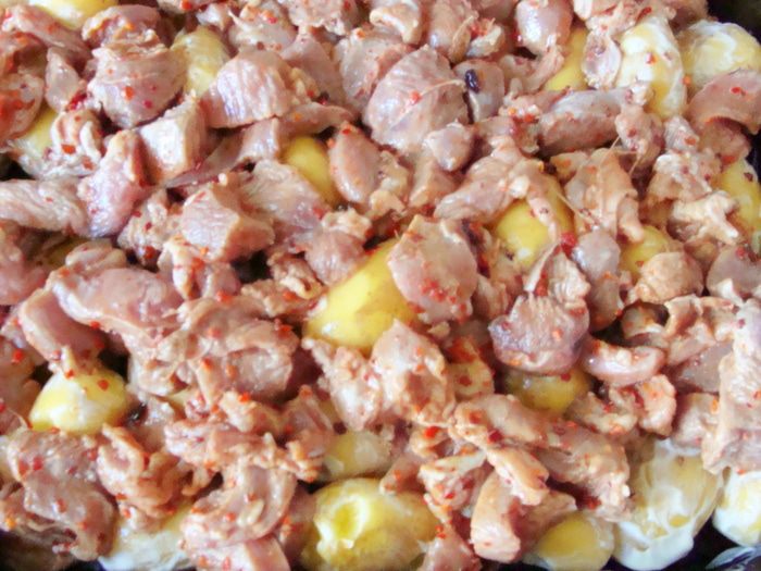 Мелкий молодой картофель промыть, обсушить. Оставить со шкуркой для вкуса и пользы! Обмазать небольшим количеством майонеза, чтобы образовалась корочка при запекании и не нужно было использовать масло. Соль добавлять не нужно, если только вы не большой ее почитатель. Майонеза и пропитки от мяса вполне хватит для сбалансированного вкуса!