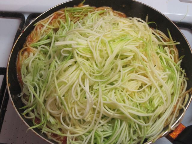 Продолжается сезон кабачков. Кабачок - универсальный овощ, из которого можно приготовить даже ... спагетти. Спагетти из кабачков может быть как гарниром для мясных блюд, так и самостоятельным блюдом. Рецепт взяла из Интернета.