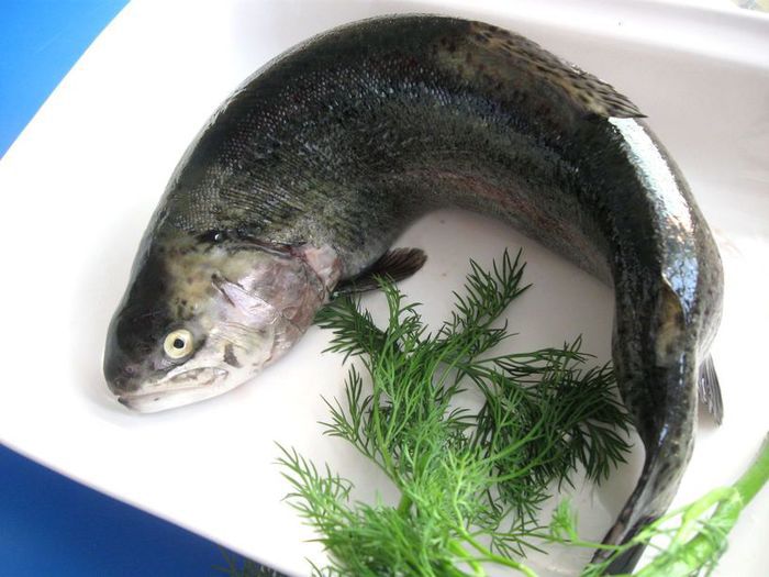 Существующие виды форели отличаются друг от друга: и по месту обитания - одни виды обитают в реках или пресноводных озерах, а другие — полноправные морские жители, по размеру, по вкусу и цвету мяса: светлое, розовое или красное. У меня это – радужная форель, мясо розовое, нежное по консистенции, обладающее приятным ароматом. Калорийность форели приблизительно в два раза ниже, чем у семги.