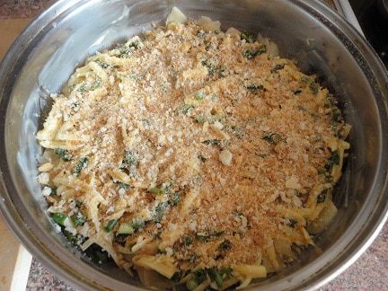 5. Немного сыра оставить, а большую его часть перемешать с яйцами, сливками и зеленью.