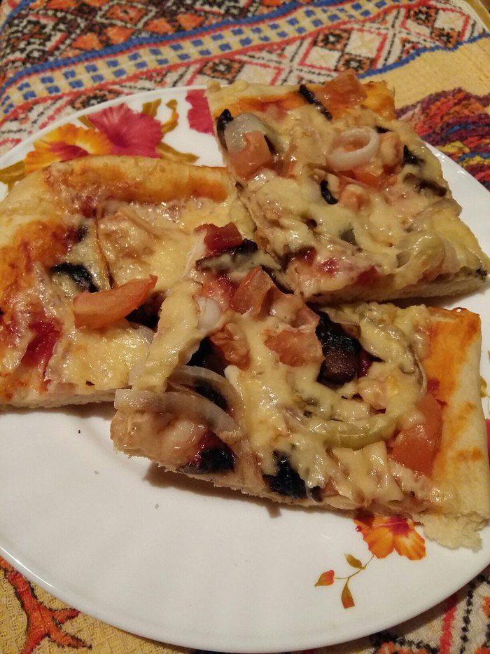Сегодня была пицца с грибами.