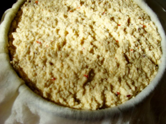 И хочу обратить внимание на то, что в зависимости от молока, получается разная структура сыра! В рецепте сыра с базиликом, использовалось цельное коровье молоко, сыр был очень мягкий и нежный, при приготовлении этого сыра, молоко было сепарированное и сыр получился несколько суше. Створаживается молоко тоже по разному. Но это нестрашно, такой сыр получается очень вкусный даже из магазинного молока)