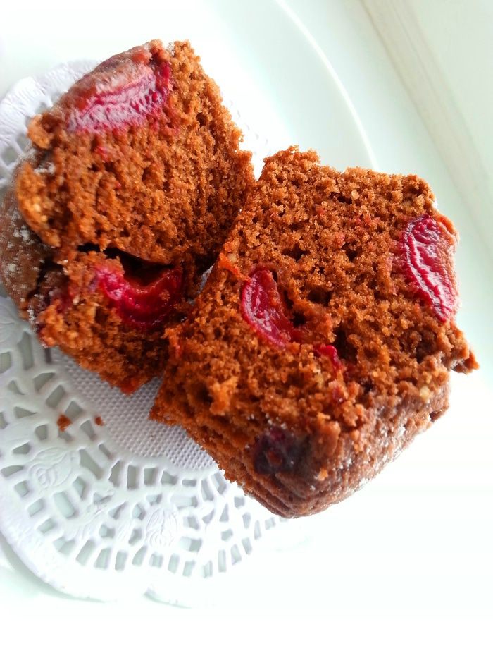 Люблю эту пору! И как же не осуществить какую - нибудь выпечку сo свежей вишней?! Я уже давно глаз положила на "Шоколадные кексы с вишней" от Ю. Высоцкой, только вишню хотелось бы не сушеную сейчас, а свежую. Я одолжила идею добавить в тесто измельченный до крошки миндаль - шикарная мысль, когда крошки миндаля соблазнительно хрустят между зубами!