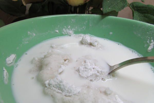Развести небольшим количеством молока, чтобы не было комочков.