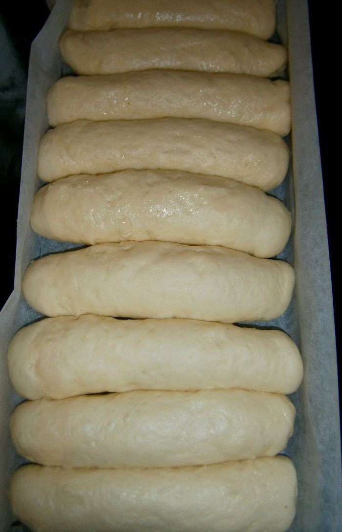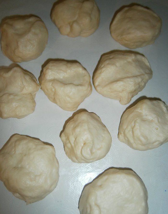 Подошедшее тесто обмять и разделить на 10 равных частей.