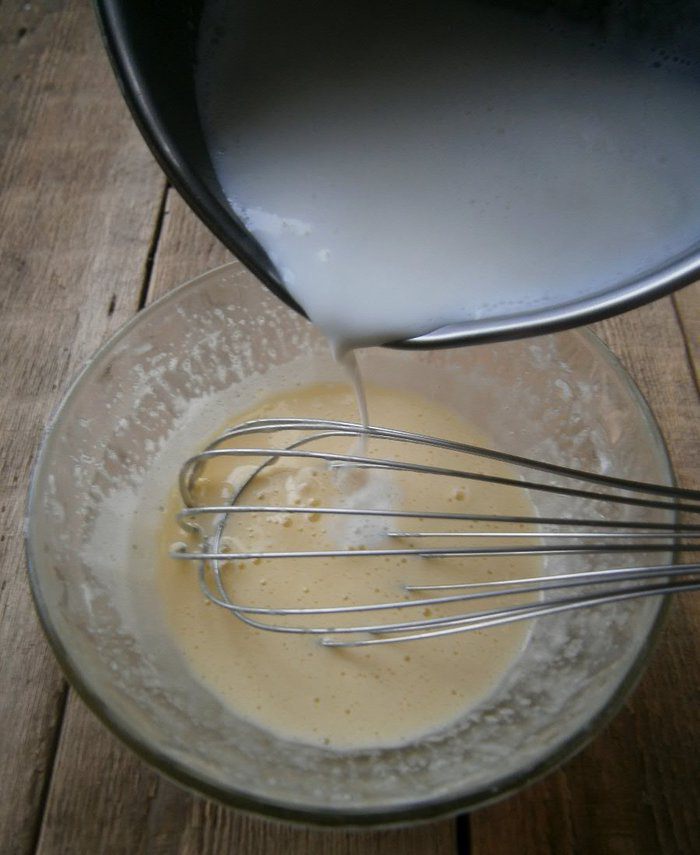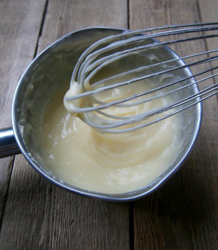 Перелить массу обратно в кастрюльку и варить на небольшом огне, постоянно помешивая. Снять с огня, ввести мягкое сливочное масло и перемешать до однородности. Дать крему полностью остыть