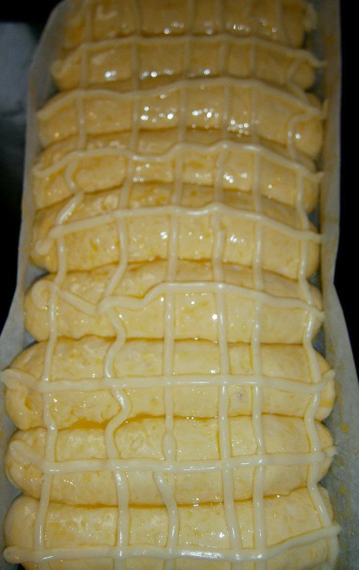 Противень застелить бумагой для выпечки, выложить трубочки в ряд. Накрыть плёнкой и оставить на 30 минут для растойки.