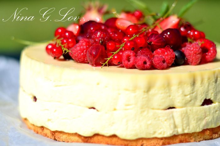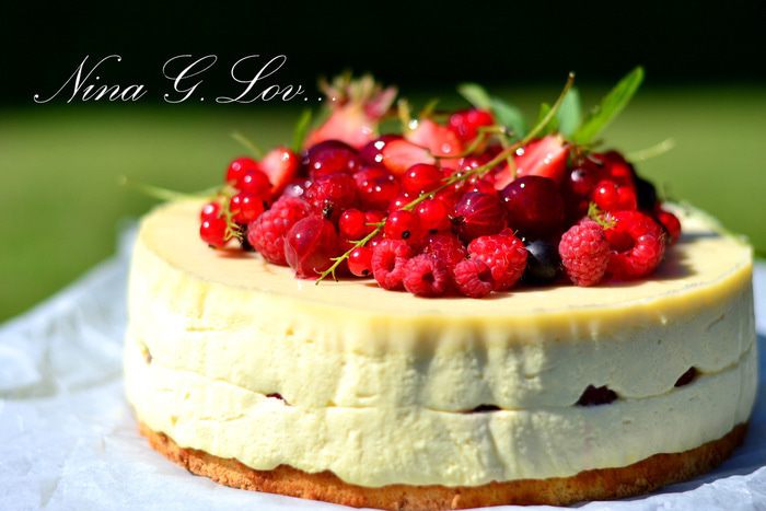 Для шоколадной глазури растопить белый шоколад ,добавив немного молока. Желатин замочить в 15 мл воды, дать набухнуть, затем добавить мл 10 крутого кипятка, перемешать и подлить к шоколадной глазури, тщательно перемешать. Вылить на тортик и дать застыть. Глазурь готовила по своему вкусу, молока, воды может понадобиться больше или меньше, контролируйте по своему вкусу густоту глазури, норму продуктов даю приблизительную.