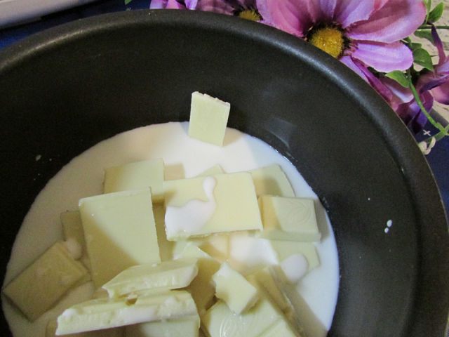 В сотейнике соединить шоколад и сливки, растопить и остудить до комнатной температуры.