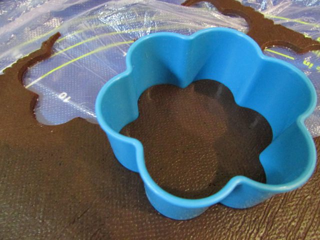 Достать тесто из холодильника и формочкой вырезать печенье.